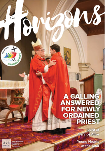 Horizons, published by us, is our own quarterly magazine. It’s full colour and available for free across the Diocese. Horizons is an important method of communication and outreach to parishioners and the wider community. It features stories of events and projects from local parishes as well as information about ministry and services offered by Diocesan Agencies.
